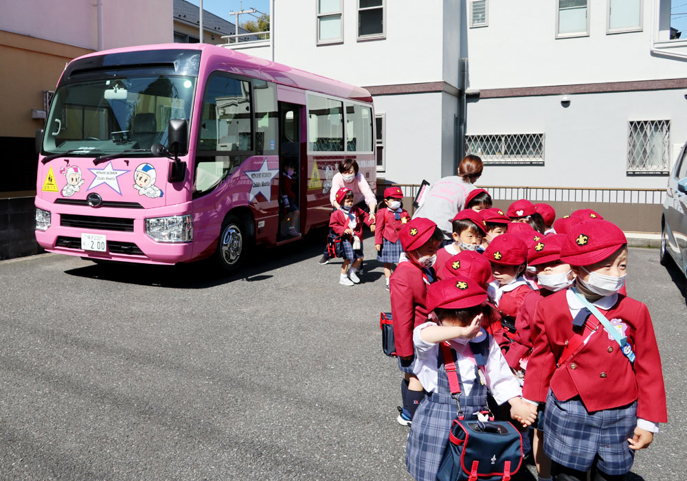 徒歩やバス通園のコース毎に分かれて降園します。