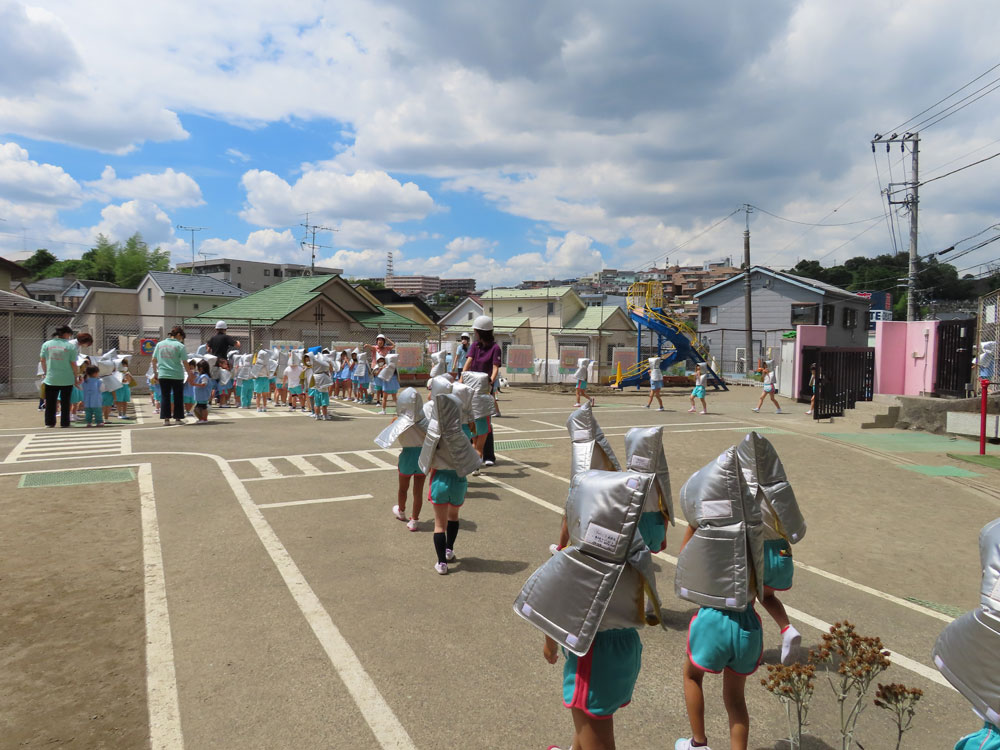 体操着も可愛らしく実用的なデザインとして、明るくきれいない色とし遠くからも目立ち園児の安全を確保します。
