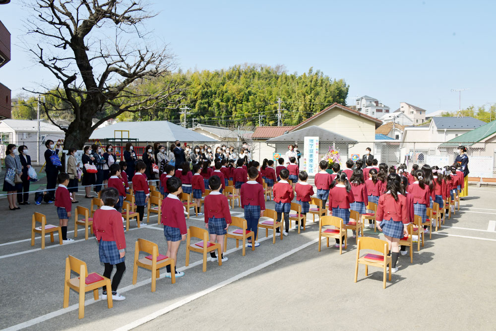 幼稚園ではスモックが主流で制服が珍しい時代に、男の子は成長と共に赤色を好まなくなる傾向にあると言われているからこそ、赤系で子どもらしさのある、かわいい制服を作ろうと園長が一からデザインを考え今の制服ができました。